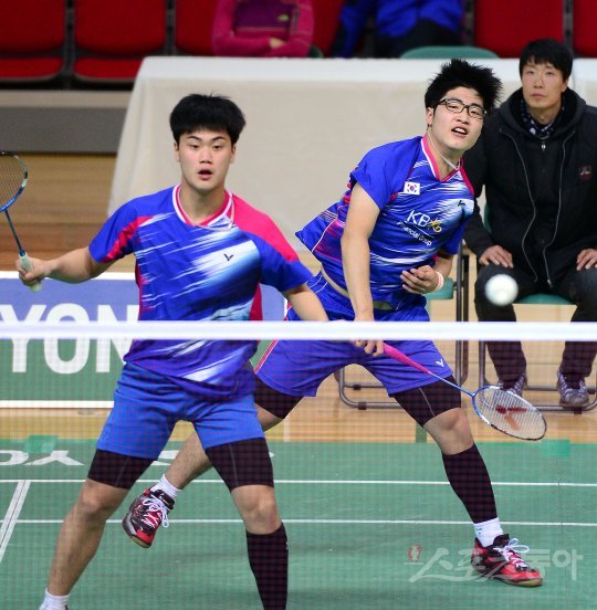 2016 요넥스 코리아주니어오픈 국제배드민턴선수권대회가 21~27일 경남 밀양배드민턴경기장에서 열린다. 25일 U-17 남자 복식 8강전에서 한국 김동휘-왕찬(오른쪽) 조가 스매싱 공격을 하고 있다.
