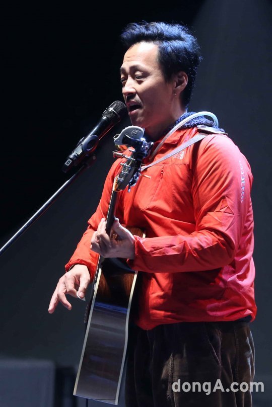 가수 강산에가 25일 오후 서울 광화문광장에서 열린 박근혜퇴진 광장촛불 콘서트 ‘물러나 SHOW’에서 공연을 선보이고 있다.