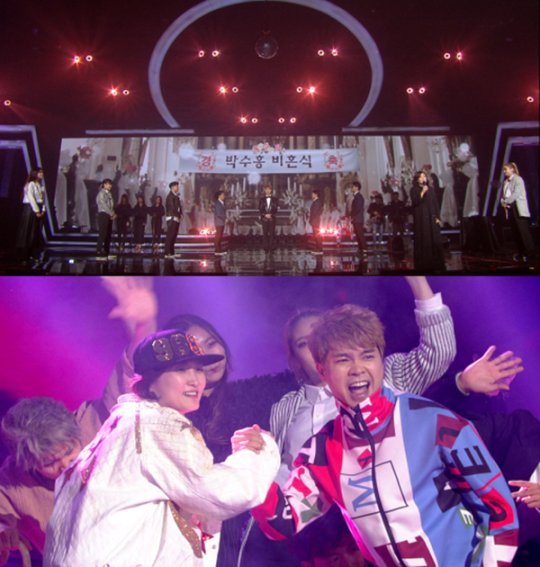 박경림이 직접 무대 콘셉트를 기획해 웃음과 완성도를 더했다. 비혼식 주인공 박수홍과 사회자 박경림의 등장으로 시작하는 무대는 박수홍의 처참한 심정을 담은 박경림의 현대 무용, 밤샘 연습한 박수홍의 랩 실력, 두 사람의 넘치는 흥과 끼를 담은 노래와 퍼포먼스까지 다양하고 풍성한 구성으로 환상의 호흡을 보여줬다.