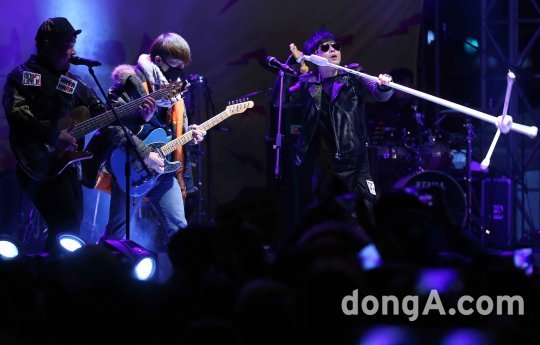 가수 이승환이 25일 오후 서울 광화문광장에서 열린 박근혜퇴진 광장촛불 콘서트 ‘물러나 SHOW’에서 공연을 선보이고 있다.