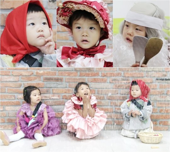 설아는 전래동화 ‘금도끼 은도끼’를 각색한 ‘금주걱 은주걱’의 산신령으로 변신한 모습. 산타클로스 같은 수염과 대머리 가발을 쓰고도 깜찍한 모습을 감출 수 없는 설아의 모습이 엄마 미소를 자아낸다.