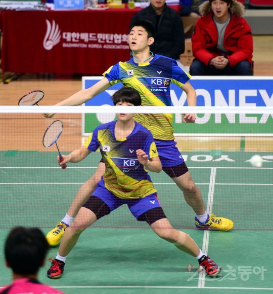 2016 요넥스 코리아주니어오픈 국제배드민턴선수권대회가 21~27일 경남 밀양배드민턴경기장에서 열린다. 26일 U-17 혼합 복식 4강전에서 한국 김문준(위)-이유림 조가 스매싱 공격을 하고 있다.