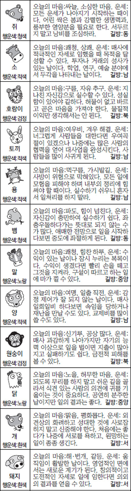 금일복권, 주식, 부동산매입 행운의 띠: 호랑이,말,개