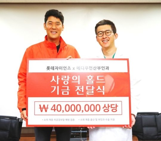 우선 30일 오전, 메디우먼산부인과에서 백동훈 원장과 윤길현 선수가 참여해 ‘사랑의 홀드’ 적립금 전달식을 가졌다. 올 시즌 중 롯데자이언츠와 메디우먼산부인과는 윤길현 선수 1홀드 당 250만원을 적립하는 협약을 맺었다. 윤길현 선수는 올해 16홀드를 기록해 총 4천만원 상당의 출산 및 여성수술이 소외계층을 위해 지원될 계획이다.