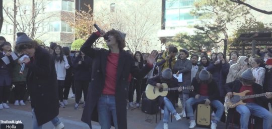 이날 다섯 쌍둥이 같은 느낌으로 모자에 곱슬 가발, 회색 코트로 통일된 스타일링을 하고 학교를 찾은 더 이스트라이트는 데뷔 타이틀곡 'Holla'를 비롯해 'One Call Away', 트와이스의 'TT', '기분 좋은 날', '나는 나' 등을 더 이스트라이트만의 버전으로 들려주며 여고생들의 마음을 흔들었고, 흥겨운 무대매너와 열정적인 라이브로 쌀쌀했던 교정을 더욱 후끈하게 만들었다.