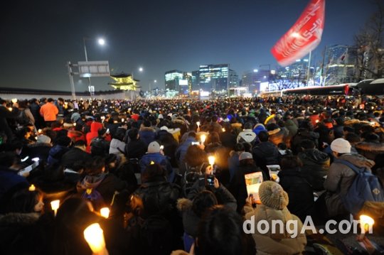 박근혜 대통령의 '비선실세'로 지목된 최순실씨의 국정농단 사태와 관련 3일 오후 서울 광화문광장에서 박근혜 대통령 하야를 요구하는 6차 범국민 촛불집회가 진행되고 있다.