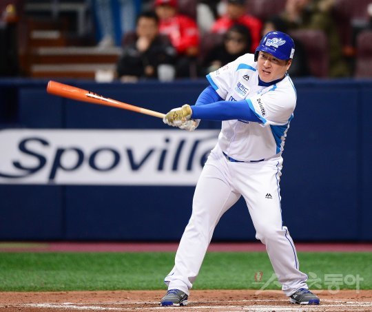 4일 서울 고척스카이돔에서 ‘레전드야구존과 함께하는 2016 희망더하기 자선야구대회’가 열렸다. 양신팀 최형우가 힘차게 스윙을 하고 있다.