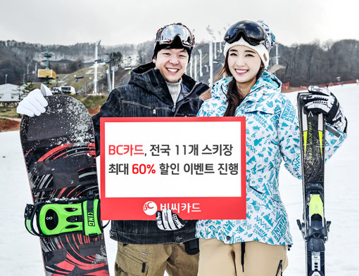 스키장 이벤트가 대표적이다. BC카드는 전국 11개 주요 스키장(비발디파크·용평리조트·오크밸리·휘닉스파크·알펜시아·양지파인·엘리시안 강촌·하이원리조트·웰리힐리·에덴벨리·베어스타운)에서 리프트권·렌탈권 등을 구매하면 최대 60%까지 할인 혜택을 제공한다.