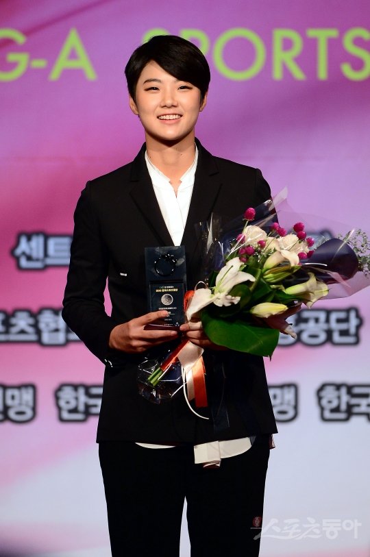 프로스포츠(프로야구·프로축구·남녀프로농구·남녀프로배구·남녀프로골프) 종목별로 올 한해를 빛낸 최고의 선수를 선정하는 ‘CMS와 함께하는 2016 동아스포츠대상’ 시상식이 6일 서울 광화문 포시즌스호텔서울에서 개최됐다. 여자프로골프 올해의 선수상을 수상한 박성현(넵스)이 기념촬영을 하고 있다.