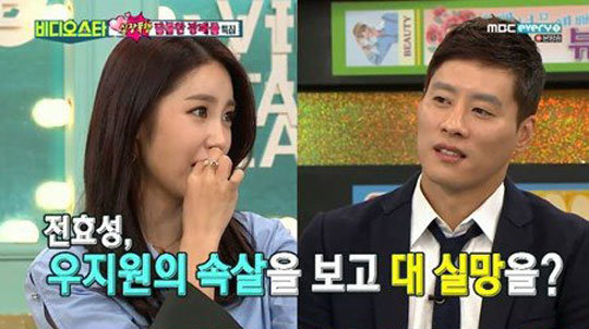 ‘비디오스타’ 우지원이 전효성이 자신의 속살을 봤다고 폭로했다.