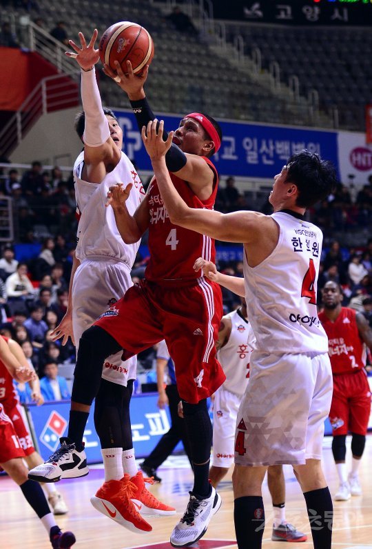 7일 고양실내체육관에서 열린 ‘2016~2017 KCC 프로농구’ 고양오리온과 KGC인삼공사 경기에서오리온 문태종이 KGC인삼공사의 수비를 뚫고 골밑 슛을 하고 있다.