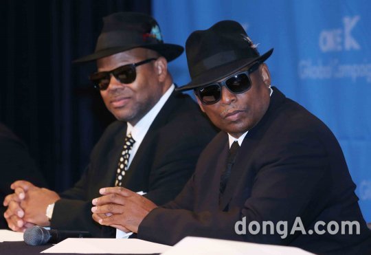 미국 팝 가수 지미 잼과 테리 루이스가 8일 오전 서울 마포구 상암 YTN 미디어홀에서 열린 'One K 글로벌 캠페인송' 제작발표회에 참석하고 있다.