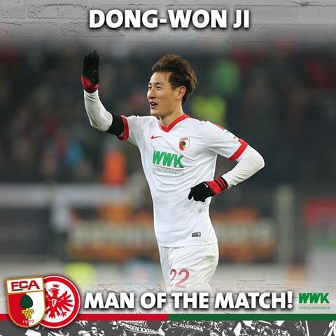 한국 국가대표팀 공격수 지동원(25,아우크스부르크)이 리그 2호골을 터트린 프랑크푸르트 전에서 팬들이 선정한 경기최우수선수(Man Of the Match)가 됐다.