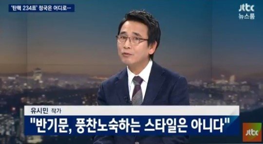 9일 오후 방송된 종합편성채널 JTBC 뉴스룸에는 유시민 작가가 출연해 박근혜 대통령 탄핵소추안이 가결된 것과 관련 차기 대선 후보에 대한 생각을 밝혔다.