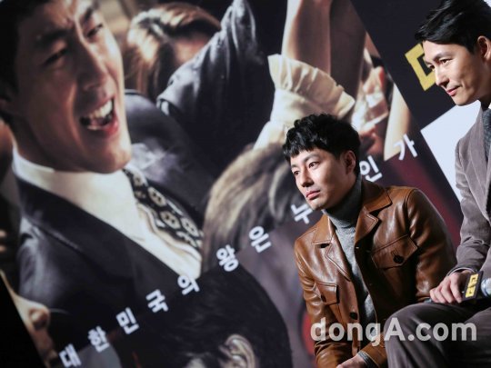 배우 조인성이 15일 오전 서울 강남구 한 멀티플렉스관에서 열린 영화 '더킹' 제작보고회에 참석하고 있다.