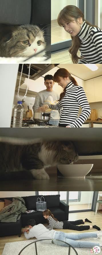 ‘우리 결혼했어요’ 윤보미와 최태준의 반려묘 ‘칸’의 첫 만남 성사 현장이 공개됐다. 최태준-윤보미는 소파 밑으로 들어간 ‘칸’을 유혹하기 위해 하트 눈빛을 발사하는가 하면, 자동 눕방까지 보여준 것으로 알려져 더욱 궁금증을 더하고 있다.