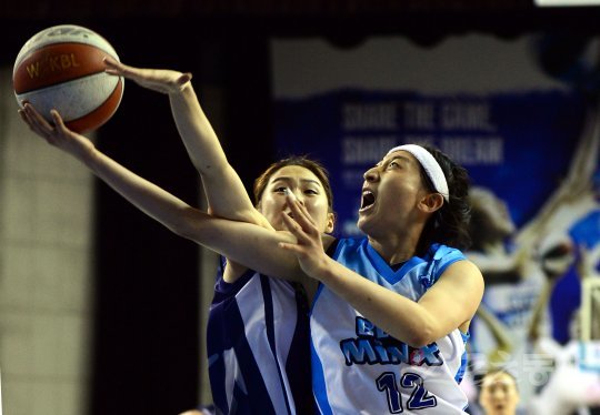 18일 경기도 용인실내체육관에서 열린 ‘삼성생명 2016-2017 여자프로농구’ 용인 삼성생명과 인천 신한은행의 경기에서 삼성생명 이주연이 신한은행 윤미지의 수비를 피해 슛을 쏘고 있다.
