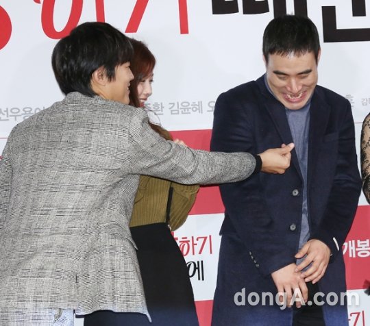 배우 배성우가 19일 오후 서울 광진구 건대입구 롯데시네마에서 열린 영화 '사랑하기 때문에' 언론시사회에 참석해 포토타임을 하고 있다.