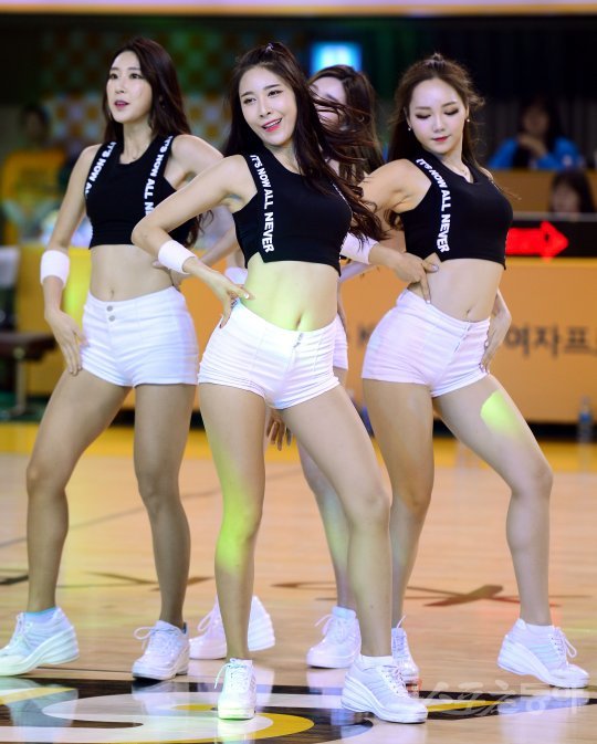 19일 충북 청주실내체육관에서 열린 ‘삼성생명 2016-2017 여자프로농구’ 청주 KB스타즈와 부천 KEB하나은행의 경기에서 KB 치어리더가 화려한 공연을 선보이고 있다.