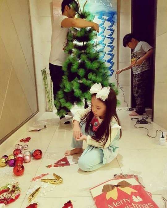 머리에 큰 리본을 꽂은 딸 서우는 각종 장식물들을 놓고 바닥에 앉아 고민하는 모습을 보여 다들 5일 남은 크리스마스 준비로 바쁜 모습이다.