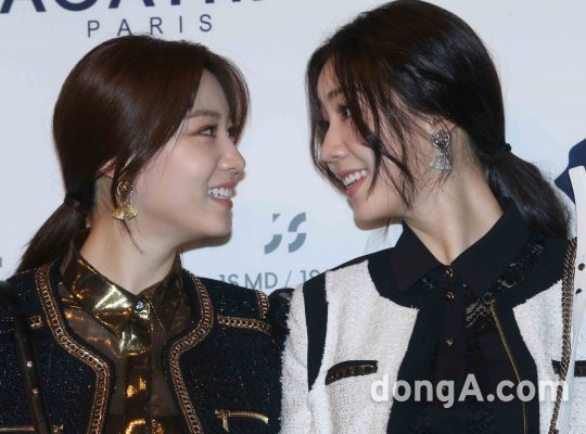배우 류효영(왼쪽)과 류화영이 20일 오후 서울 중구 반얀트리 클럽 앤 스파 서울에서 열린 아가타 골프 한국 론칭 패션쇼에 참석하기 전에 포토타임을 하고 있다.