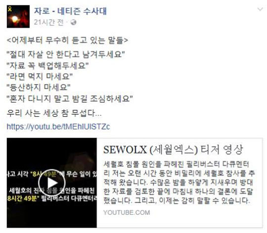 사진|자로 ‘세월호 진실’ 폭로 예고. SNS 캡처