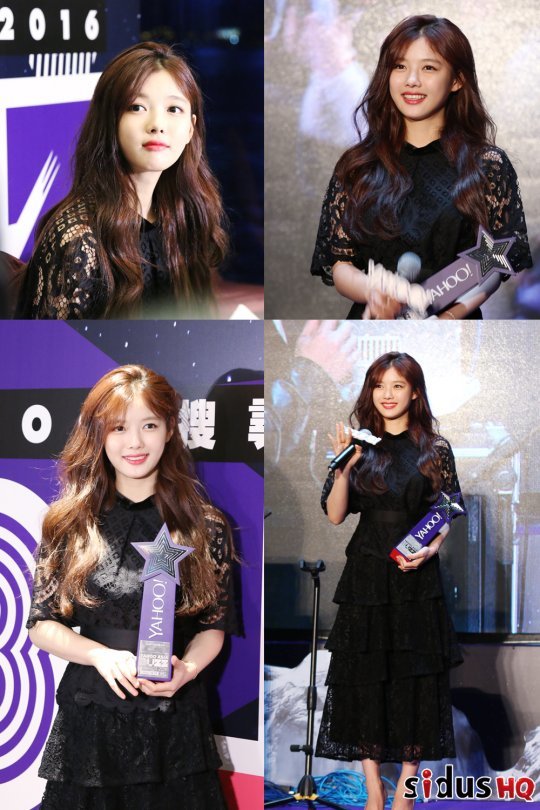 20일 홍콩 현지에서 열린 ‘야후 아시아 버즈 어워즈 2016’(Yahoo Asia Buzz Awards 2016)에 참석, 생애 첫 해외 시상식에서 ‘연간 최다 검색 신세대 여배우상’을 수상해 홍콩 팬들의 큰 환호를 받은 것.