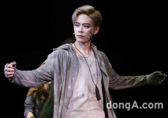 보이그룹 보이프렌드의 동현이 23일 오후 서울 종로수 두산아트센터 연강홀에서 열린 뮤지컬 '로미오와 줄리엣' 프레스콜에서 하이라이트를 시연하고 있다.