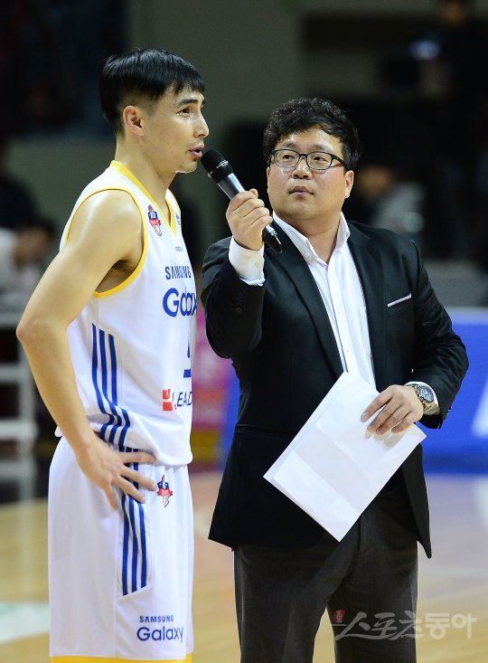 23일 안양실내체육관에서 ‘2016~2017 KCC 프로농구’ 삼성 썬더스와 KGC인삼공사 경기가 열렸다. 1쿼터 경기 중 삼성 썬더스 주희정이 KBL 최초 통산 1000경기 출장 시상식에서 팬들에게 감사의 인사를 전하고 있다.