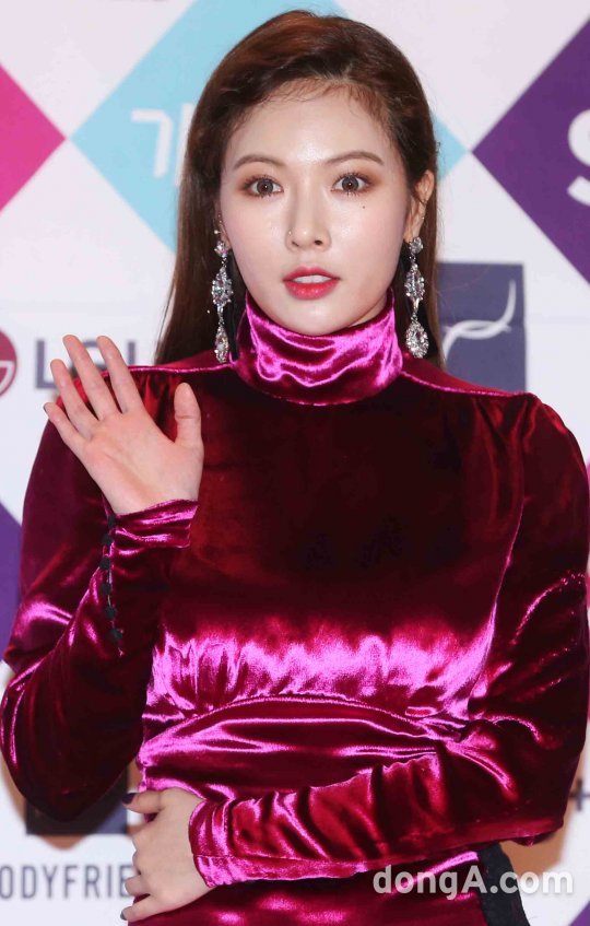 가수 현아가 26일 오후 서울 강남구 코엑스 D홀에서 열린 '2016 SBS 가요대전'에서 레드카펫을 밟고 있다.