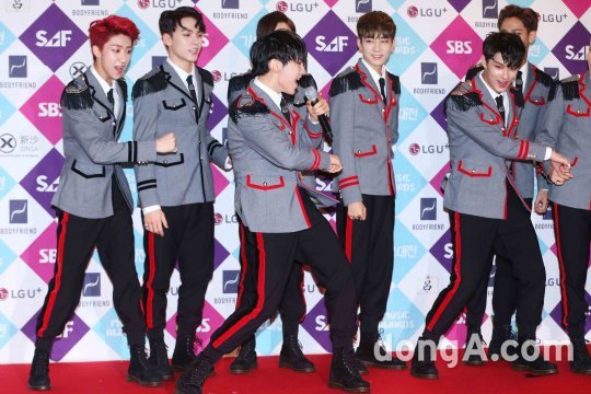 그룹 세븐틴이 26일 오후 서울 강남구 코엑스 D홀에서 열린 '2016 SBS 가요대전'에 참석해 포토타임을 하고 있다.