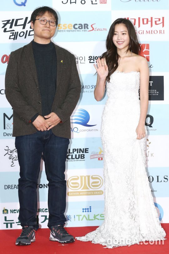 조정래 감독(왼쪽), 배우 최리가 27일 오후 서울 광진구 세종대학교 컨벤션센터에서 열린 '제53회 대종상영화제'에 참석해 포토타임을 하고 있다.