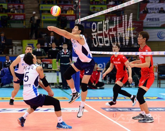 27일 수원실내체육관에서 열린 ‘NH농협 2016~2017 V리그’ 남자부 우리카드와 한국전력 경기에서 우리카드 박상하가 리시브를 하고 있다.