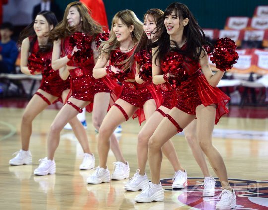 28일 서울 잠실학생체육관에서 열린 ‘2016-2017 KCC 프로농구’ 서울 SK와 안양 KGC인삼공사의 경기에서 SK 치어리더가 화려한 공연을 선보이고 있다.