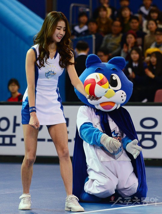 28일 천안 유관순체육관에서 ‘2016-2017 NH농협 V리그’ 현대캐피탈과 삼성화재의 네 번째 ‘V-클래식 매치’가 열렸다. 경기를 앞두고 삼성화재 치어리더 박기량이 시구를 하고 있다.