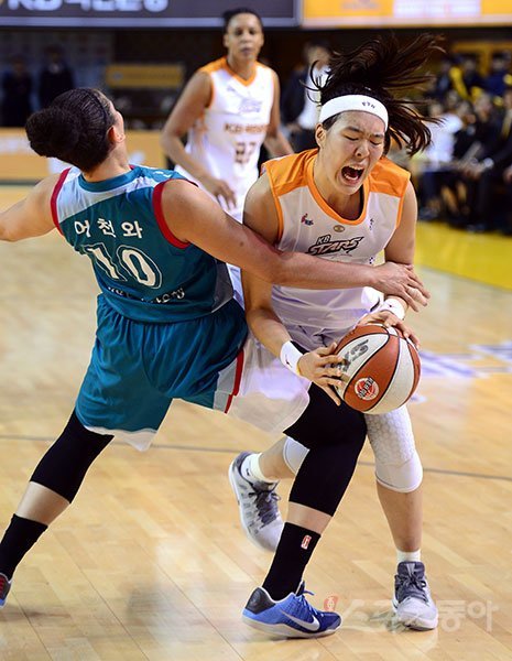 박지수는 “고교 시절에는 경기를 몰아서 치르는 편이었는데, 긴 시즌으로 진행되는 프로는 확실히 다르더라. 지금과 같은 경기 스케줄을 소화해본 경험이 없다. 그 때문인지 경기 막판 체력이 확 떨어진다는 것을 느끼고 있다”고 털어놓았다. 이어 “삼성생명과의 경기 막판에 공격을 하다가 넘어졌는데, 나도 모르게 다리에 힘이 풀렸다. ‘왜 이러지’ 싶었는데 체력적 문제였다. 좀더 노력해야 할 것 같다”며 스스로에게 부여된 과제를 설명했다.
