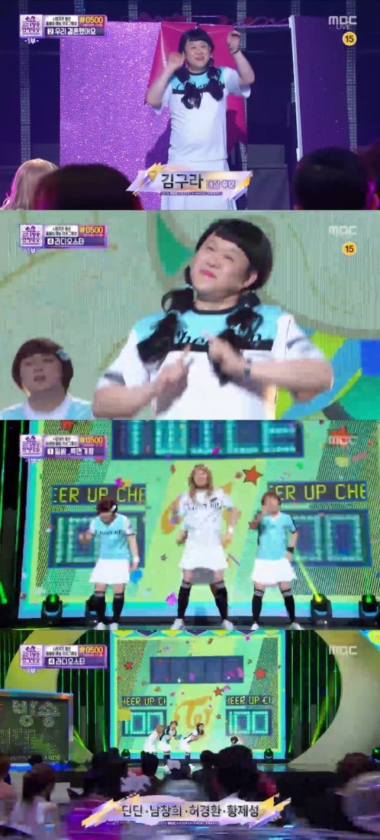 이날 대상 후보들의 특별 공연이 준비됐다. 그중에서도 첫번째 주자로 나선 이는 김구라다. 김구라는 황제성, 남창희, 딘딘, 허경환과 트와이스의 ‘CHEER UP’ 무대를 꾸몄다.