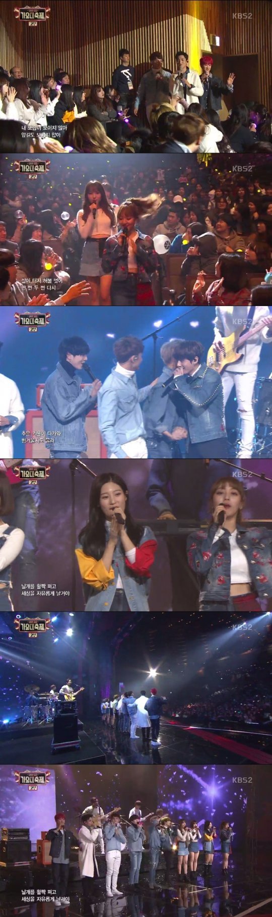 29일 오후 방송된 ‘2016 KBS 가요대축제’에서는 방탄소년단 정국, 갓세븐 유겸과 뱀뱀, 세븐틴의 민규, 도겸, 디에잇, 트와이스 지효, 여자친구 유주와 은하, 아이오아이 정채연, 세븐틴밴드가 무대를 꾸몄다.