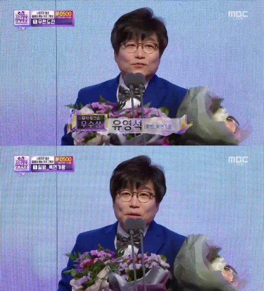 이날 유영석은 뮤직 토크쇼 부문 남자 우수상을 수상했다. 유영석은 “가슴이 뛴다는 게 이런 거구나 싶다”며 “모든 제작진에 감사하다. 너무 기분이 좋다. 이 상은 그동안 쭉 출연했던 출연자 덕분에 받은 상이라고 생각한다. 웃기도 하고 울기도 했다. 감동을 많이 받았다”고 공을 돌렸다.
