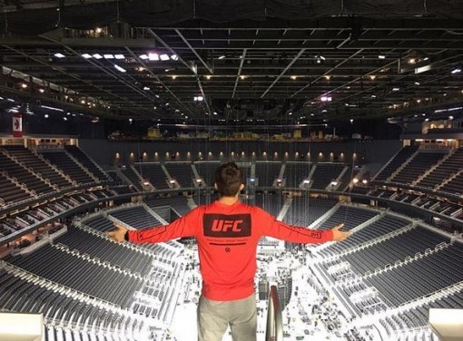 공개된 사진 속 김동현은 미국 라스베가스에 위치한 티모바일 아레나를 배경으로 양 팔을 뻗고 있는 모습이다. 자신의 경기가 펼쳐질 곳을 미리 바라보는 김동현의 시선이 느껴진다.