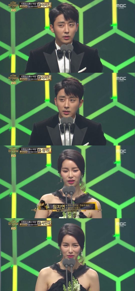 30일 오후 29일 오후 서울 마포구 상암동 MBC 사옥에서 2016 MBC 연기대상이 개최됐다. 이날 연기대상 시상식의 사회는 방송인 김국진과 가수 겸 배우 유이가 맡았다.