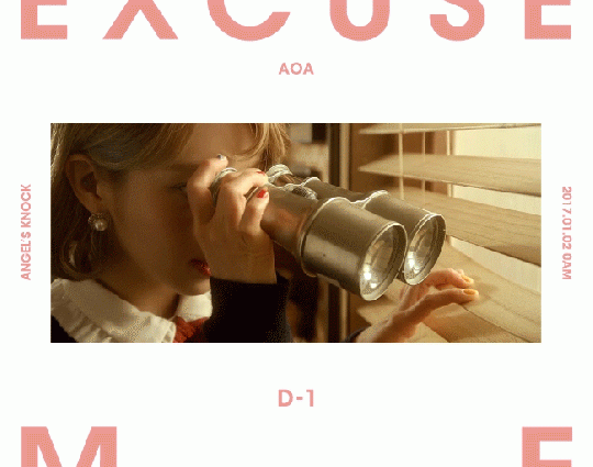 AOA 소속사 FNC엔터테인먼트는 1일 AOA 공식 SNS에 정규 1집 ‘엔젤스 노크(ANGEL’S KNOCK)’ 더블 타이틀 곡 ‘익스큐즈 미(Excuse Me)’ 초아 버전과 ‘빙빙(Bing Bing)’ 설현 버전의 모션 포스터를 공개했다. 일곱 멤버들의 모습이 담긴 개인 모션 포스터는 1일 정오부터 한 시간 간격으로 순차적으로 공개된다.