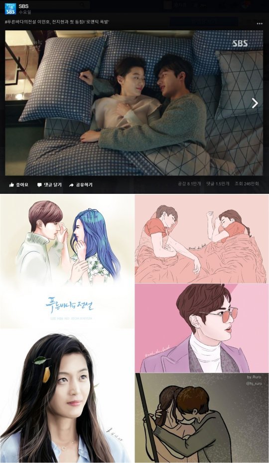 더욱이 ‘푸른 바다의 전설’의 화제성을 입증하듯 SBS 공식 페이스북 계정에 업로드된 지난 13회 ‘준청커플의 첫 동침’ 영상은 조회수 246만 회(2017년 1월 1일 오후 2시 기준)를 돌파하는 대 기록을 세우기도.