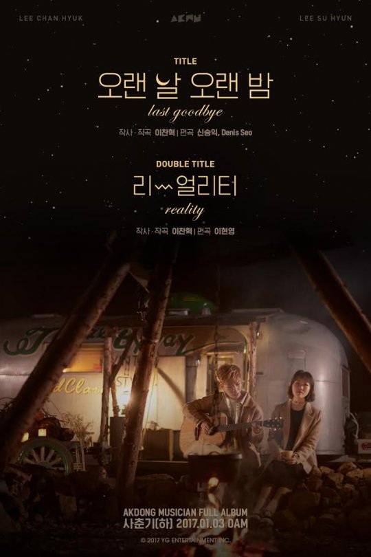포스터에는 별이 가득한 밤하늘을 배경으로 캠핑카 앞에 분위기 있게 앉아있는 악동뮤지션의 이미지가 담겨있으며, 그 위로 더블 타이틀곡인 ‘오랜 날 오랜 밤(LAST GOODBYE)’와 더블 타이틀곡 ‘리얼리티(REALITY)’의 제목이 적혀있어 눈길을 끈다.