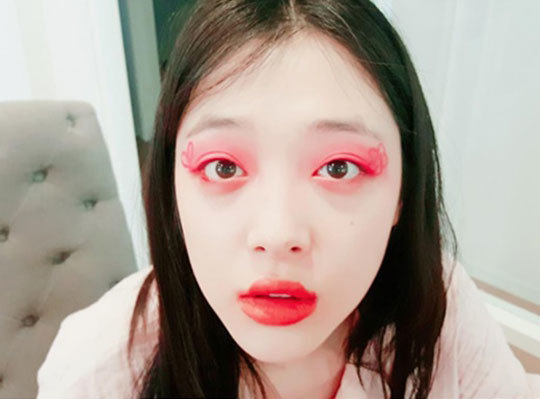 설리는 1일 자신의 인스타그램에 “안녕? 우리 작년에 봤었지? 오랜만이네”라는 글과 함께 여러장의 사진을 게재했다. 온통 핑크색과 빨간색으로 화장을 한 모습과 가슴이 훤히 드러나는 셔츠를 입고 노출을 감행하기도 했다.