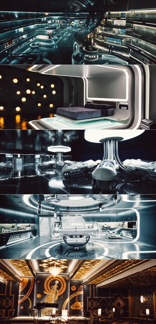 ‘패신저스’의 프로덕션 디자인을 맡은 가이 핸드릭스 디아스는 ‘인디아나 존스’, ‘인셉션’에서도 본인만의 세계관을 확장 했던 디자이너. ‘패신저스’를 위해 수개월에 걸친 세트 설치와 70여일 동안 디자인 시뮬레이션을 거쳐, 아발론 호를 완성할 수 있었다. 그는 “‘패신저스’는 영혼이 있는 우주재난 영화다. 외-내부 인테리어는 아름다우면서도 3차원 세계에서 실현 가능한 설계여야 했다”고 밝혔다. 또한 그는 “모튼 틸덤 감독과 시각적 이미지 구현에 대해 심도 싶은 대화를 나눴다. 감독은 과거 SF영화들의 스타일링을 전복 시키고 고전적이면서도 다양하고, 상상할 수 있는 모든 시설을 갖춘 우주선이 되길 바랐다”며 디자인 컨셉을 전했다.