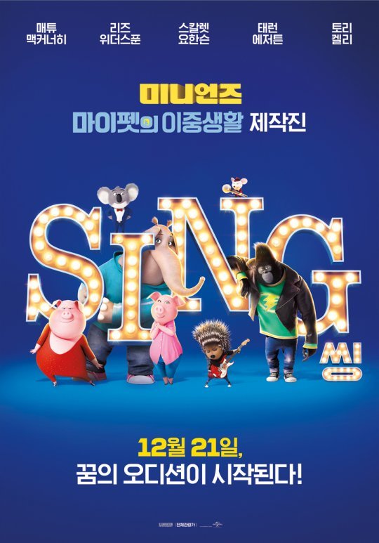 개봉 2주차에도 관객들의 뜨거운 지지와 사랑을 받고 있는 뮤지컬 애니메이션 ‘씽’은 전국 극장가에서 절찬 상영중이다.