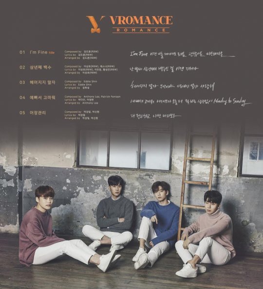 타이틀곡 'I`m Fine'은 히트작곡가 김도훈의 곡으로 브로맨스의 호소력 짙은 목소리가 폭발하는 감성 발라드 곡이다. 정통 발라드 사운드 위에 현대 음악적인 색다른 사운드가 더해져 음악적 완성도를 높이며 기존의 발라드와는 차별화된 곡으로 탄생했다.