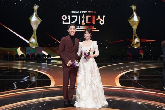 온라인 조사회사 피앰아이(PMI)가 20대부터 50대 이상 남녀 2000명에게 2016년 방송 3사 연기대상 베스트 커플상 후보에 오른 배우 중 실제로 이어졌으면 하는 커플을 물어본 결과, ‘태양의 후예’의 송중기-송혜교 커플이 16.4%로 1위에 올랐다.