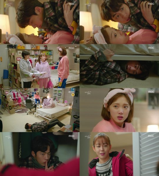 경수진이 잘 열리지 않는 옷장 문을 힘껏 잡아당겼다가 그 속에 숨어있는 남주혁을 발견하게 된 것. 이 상황에 놀라 토끼눈을 뜬 이성경과 부끄러운 듯 손가락을 입술에 갖다 대며 숨겨달라는 ‘쉿’ 포즈를 취하는 남주혁의 모습이 폭소를 자아냈다. 다행이 이성경과 남주혁의 ‘비밀 연애’를 알고 있던 경수진은 기숙사 옷장까지 파고든 깜찍한 두 사람의 연애행각에 웃음을 지으며 든든한 지원군을 자처했다.
